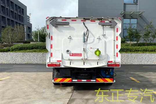 洗掃車采用中置兩刷盤,中置寬吸盤,配上具有防撞避障功能的V型高壓沖水架,組成一條大于3.5米的沖洗清掃帶。采用不銹鋼材料加工而成的水箱與垃圾箱均為采用方形瓦棱結(jié)構(gòu)。水箱分為兩部位,一部分為前置獨(dú)立水箱,裝配在動力倉的前部;另一部分為設(shè)置在垃圾箱前部的水箱,可隨垃圾箱與動力倉罩同時(shí)升降。具有舉升功能的垃圾箱內(nèi)裝配有高壓沖洗噴頭,使得卸料更為輕松、干凈徹底。能夠隨垃圾箱體舉升的動力倉罩可使動力系統(tǒng)的維修保養(yǎng)極為便利。采用歐美地區(qū)的名優(yōu)配套部件,使得整車性能更為優(yōu)良,工作更為可靠。