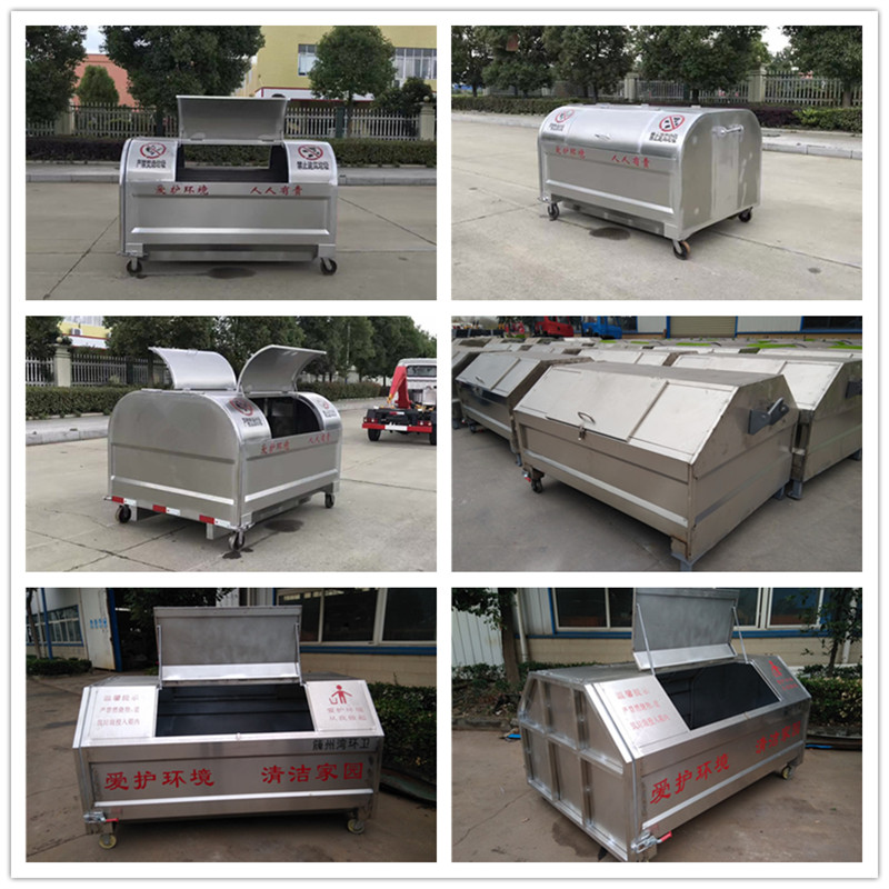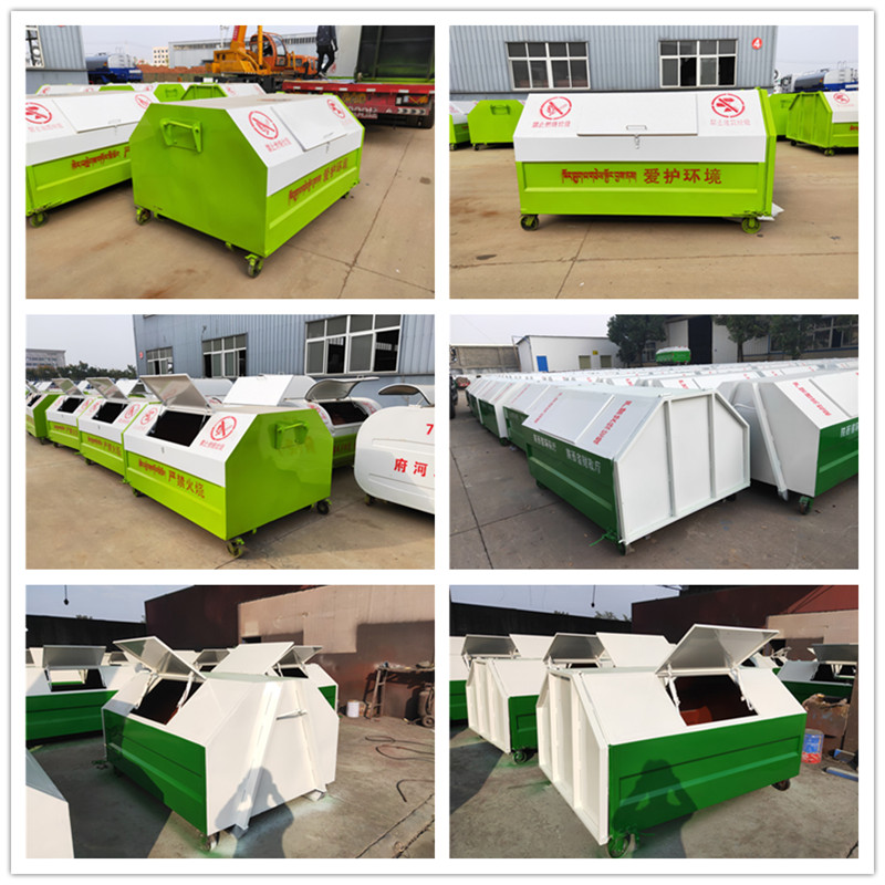 勾臂垃圾車配套移動(dòng)垃圾箱外形以上梯形下長方形、上弧形下長方形、上弧形下弧形、長方形為主,箱體兩邊各帶一對或二對垃圾投入口或頂部開口,帶蓋式箱體能夠避免風(fēng)將輕質(zhì)垃圾(塑料袋,廢紙等)吹散和防止雨水進(jìn)入箱內(nèi);箱體底部帶一對鐵輪方便吊上卸下時(shí)垃圾箱的移動(dòng),箱體后部可開啟【帶鎖緊機(jī)構(gòu),配備密封條】。勾臂垃圾箱外觀形狀、大小容積可根據(jù)用戶需求定制加工。