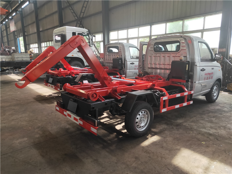 勾臂垃圾車【車廂可卸式垃圾車】車體和垃圾箱可完全分離,由液壓系統(tǒng)來完成收箱/放箱,在平日里可將車載垃圾箱放置到各個(gè)垃圾收集點(diǎn),待垃圾收集滿后,該車可直接開赴收集點(diǎn),通過液壓系統(tǒng)的操控,可將垃圾車后座上加裝的勾臂放下,掛住站內(nèi)箱體前端的連接點(diǎn),將垃圾箱拉**車體的后座上,此時(shí)即可開動(dòng)車輛,將垃圾運(yùn)送垃圾處理站內(nèi),進(jìn)行自卸式傾倒,優(yōu)點(diǎn)就是可一車配多斗,一輛車就可以維持?jǐn)?shù)個(gè)垃圾收集站的運(yùn)轉(zhuǎn),效率高,且箱體為密封式設(shè)計(jì),不會(huì)造成二次污染。