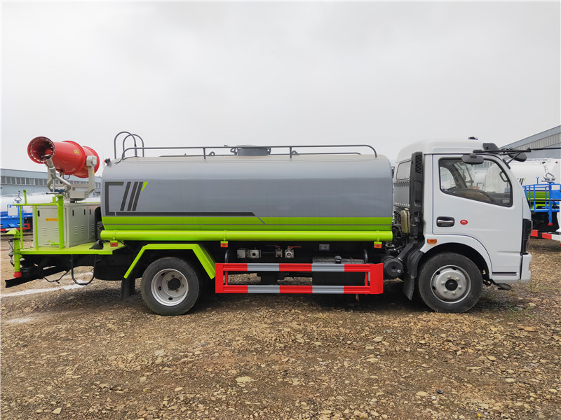 灑水車工作主要由發(fā)動機(jī)帶動變速箱,變速箱上安裝的取力器帶動灑水車水泵產(chǎn)生動力,將罐體內(nèi)部的水通過管路噴灑出去,水泵可自吸自排。可根據(jù)用戶需求選配抑塵霧炮。