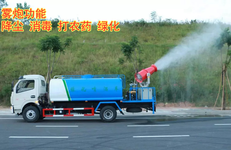灑水車工作主要由發(fā)動(dòng)機(jī)帶動(dòng)變速箱,變速箱上安裝的取力器帶動(dòng)灑水車水泵產(chǎn)生動(dòng)力,將罐體內(nèi)部的水通過管路噴灑出去,水泵可自吸自排。可根據(jù)用戶需求選配抑塵霧炮。